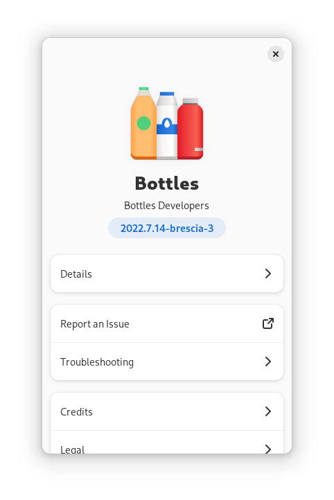 Work also continues in improving the user interface of Bottles. In this release we have smoothed some corners but for sure the most noteworthy update is definitely the new About dialog, part of libadwaita.