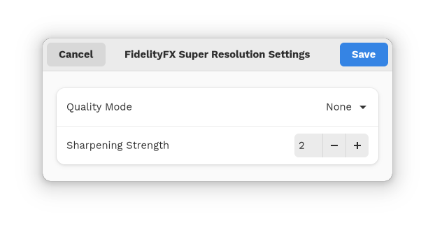 The options window for FidelityFX Super Resolution was updated to be clearer about what is does.